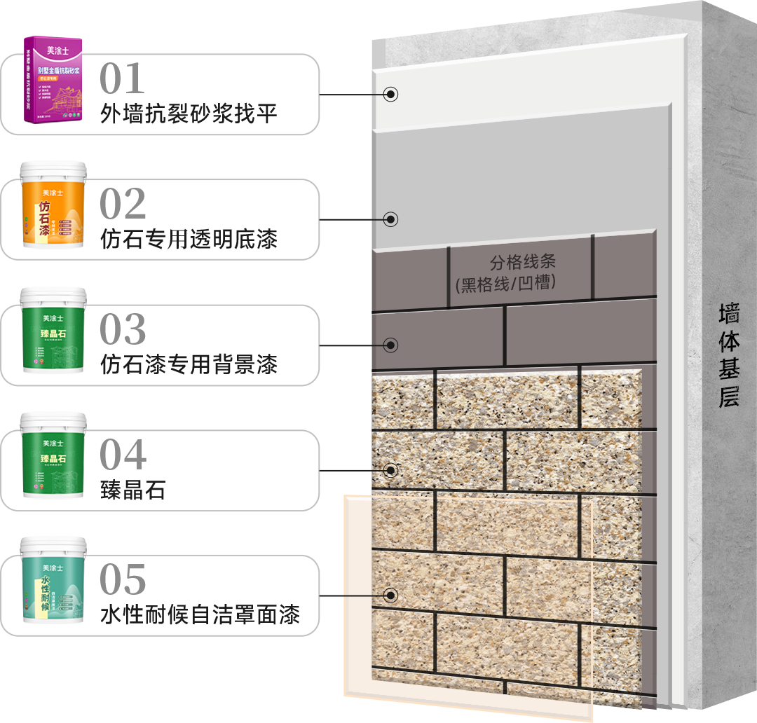 采用高性能有機(jī)改性水性丙烯酸樹脂乳液做為主要的成膜物質(zhì),精選高硬度的石英砂為骨架,搭配水性環(huán)保型功能助劑精制而成的水性含砂多彩涂料。可通過多種色彩搭配對(duì)荔枝面石材進(jìn)行高度仿真的裝飾材料,產(chǎn)品色彩自然,紋路酷似石材,顏色、造型多樣,施工簡(jiǎn)便;綜合性能優(yōu)異,耐候保色,持久耐用,是當(dāng)代外墻理想裝飾涂料!