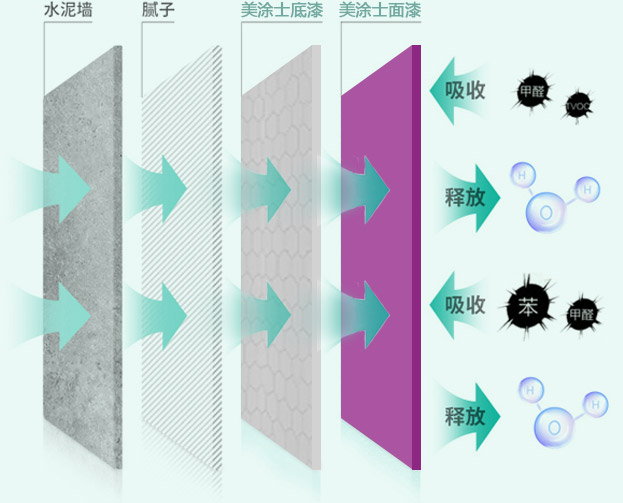 美涂士獨有的360°抗甲醛技術(shù),全方位有效的