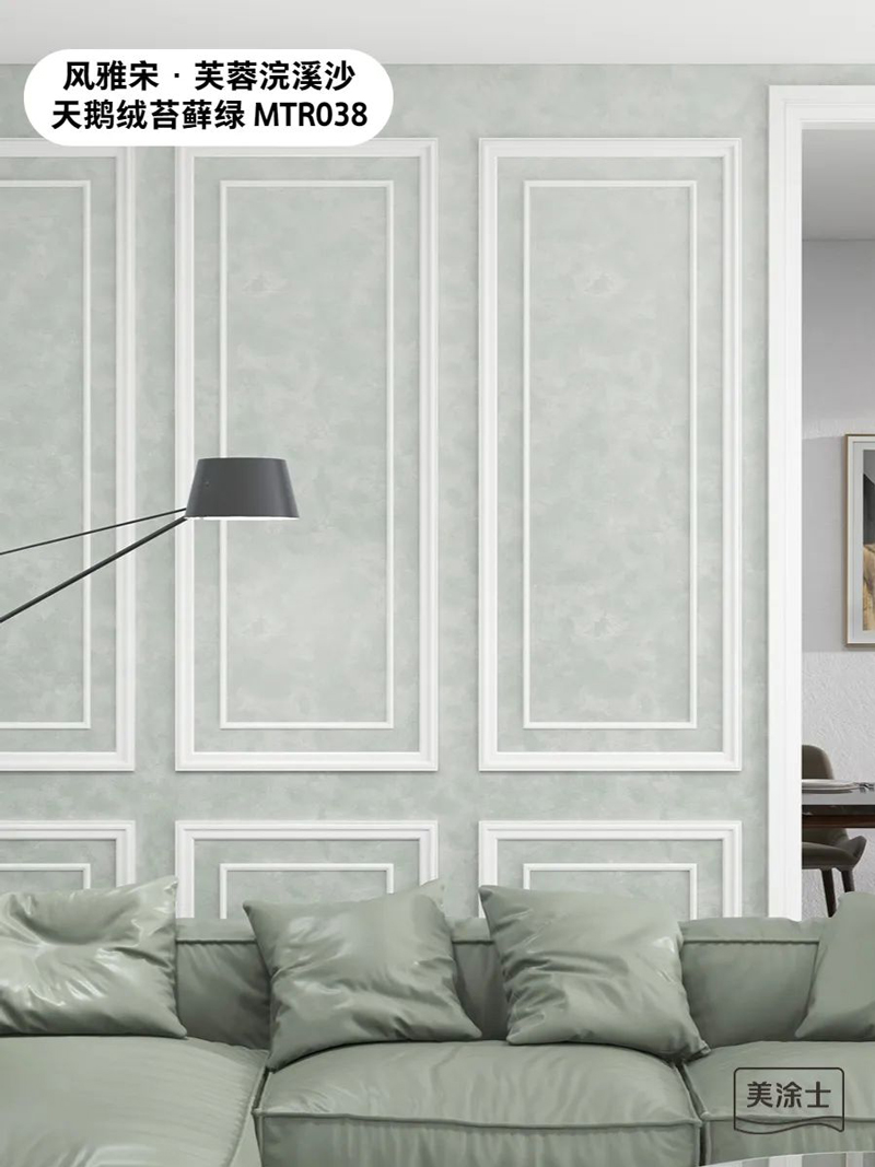 時尚是個輪回,興盛于千禧年的天鵝絨藝術漆,與充滿復古氣息的苔蘚綠融為一體,有別于現(xiàn)代裝修風格和千篇一律的全屋白墻設計中,重新戳中了人們的心。