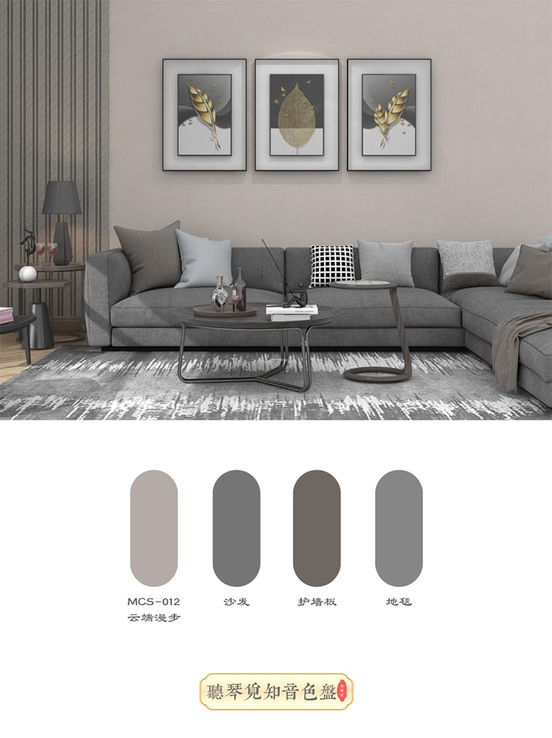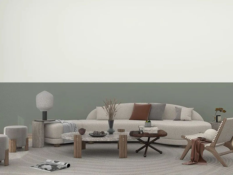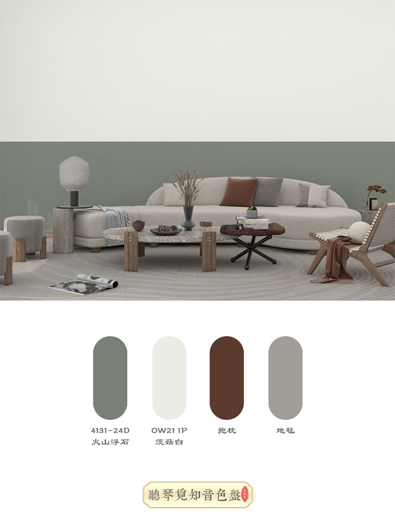 火山浮石4131-24D,是一種內(nèi)涵沉穩(wěn)的象征,它寓意著文墨優(yōu)雅的氣質(zhì),也能體現(xiàn)出主人莊重成熟的性格。把氣質(zhì)優(yōu)雅的墨綠色,通過拼色墻的方式來呈現(xiàn),使得年輕的空間也透露出莊重優(yōu)雅的華麗感。