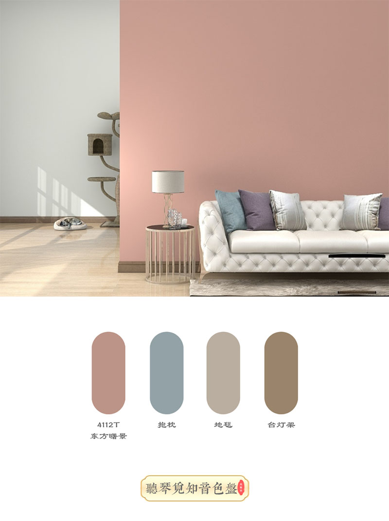 東方曙景4112T,是一種甜而不膩,溫暖又輕盈,給人淡淡的、暖暖的色調(diào)。它色調(diào)偏暖,但又足夠淡雅,如同在花叢中沐浴春光一般美好,營造一種平靜而舒適的家居氛圍。