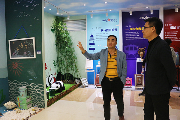 美涂士楊總帶領(lǐng)全包圓蔡總參觀美涂士產(chǎn)品展廳