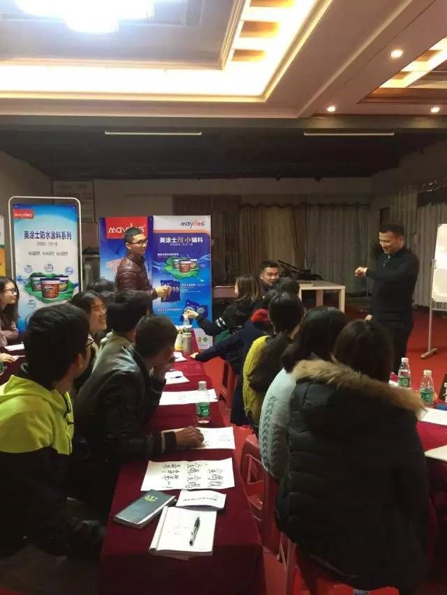 打造狼性團(tuán)隊(duì),開啟美涂士2017高速發(fā)展引擎,為美涂士實(shí)現(xiàn)戰(zhàn)略目標(biāo)提供強(qiáng)勁動力——2017年2月8日,江門美涂士團(tuán)隊(duì)舉辦了銷售綜合培訓(xùn)會,以“相信專業(yè)的團(tuán)隊(duì)力量”為主題,進(jìn)行了一場囊括美涂士家裝體系產(chǎn)品、藝術(shù)涂料、基輔材產(chǎn)品、銷售模式、產(chǎn)品體驗(yàn)與實(shí)操的綜合培訓(xùn)。