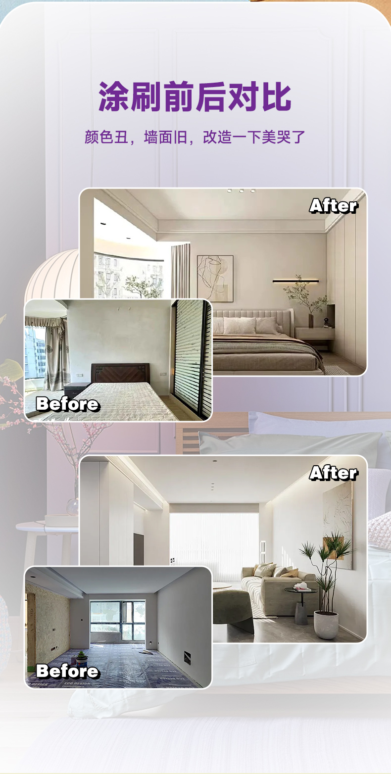 真凈味竹炭防霉?jié)嵃讐γ嫫?,添加竹炭因子,有效多孔吸附祛除空氣中的異味,同時采用全新凈味環(huán)保配方,氣味更加清新。具有耐擦易潔、防霉透氣、遮蓋力優(yōu),亮麗潔白等實用性能,輕松解決多種常見墻面問題,讓您輕松凈享自然健康的家居生活。