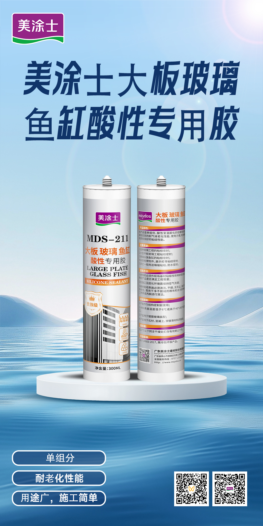 系酸性、室溫固化的單組分耐候硅酮密封膠,擠出后與空氣中的水汽發(fā)生反應(yīng),固化后形成具有耐寒、耐熱、無腐蝕、干燥速度快、環(huán)保無醛的高強(qiáng)粘結(jié)力彈性體,對(duì)玻璃、陶瓷、木材等具有優(yōu)異的粘接性。